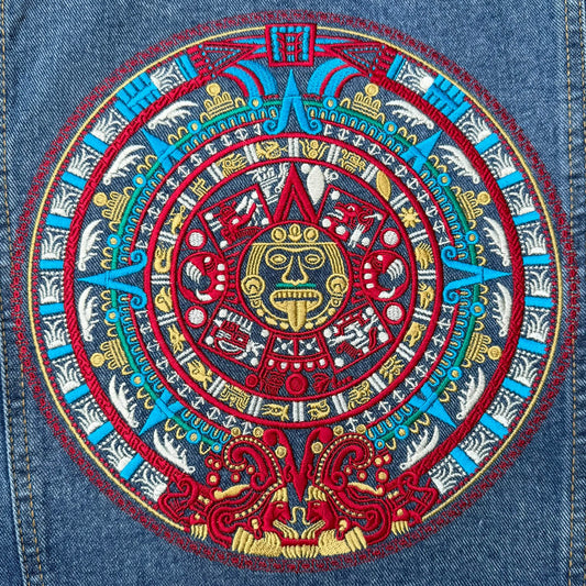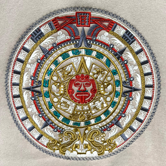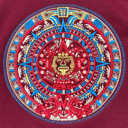Mayan Calendar Women's Embroidered Funnel Neck Half Zip Sweatshirt